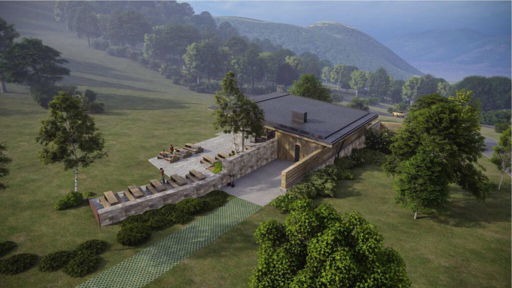 Borítókép: Négyévszakos fogadóépület a Nagy-Villámon – látványterv (Pilisi Parkerdő Zrt.)