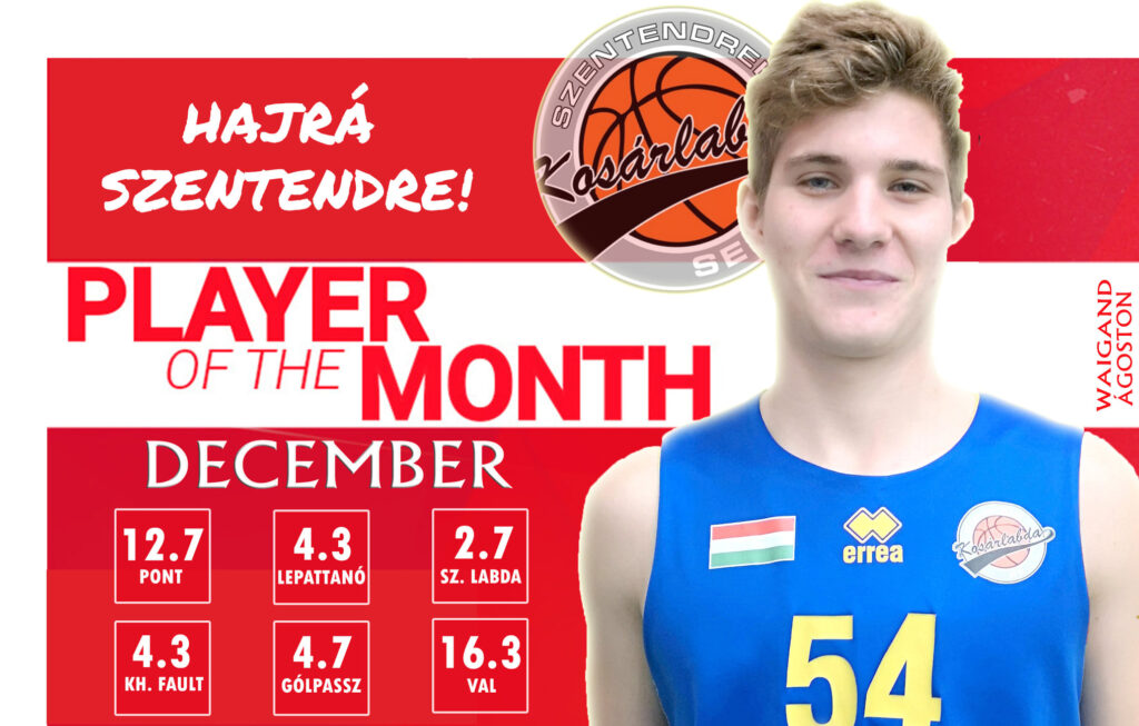 A klub tájékoztatása szerint decemberben Waigand Ágoston a játék minden elemében kiemelkedőt nyújtott: a három bajnokin 12.7 pontot, 4.3 lepattanót, 2.7 szerzett labdát, 4.3 kiharcolt faultot, 4.7 gólpasszt és 16.3 teljesítmény indext átlagolt. Gratulálunk Ágoston, csak így tovább!