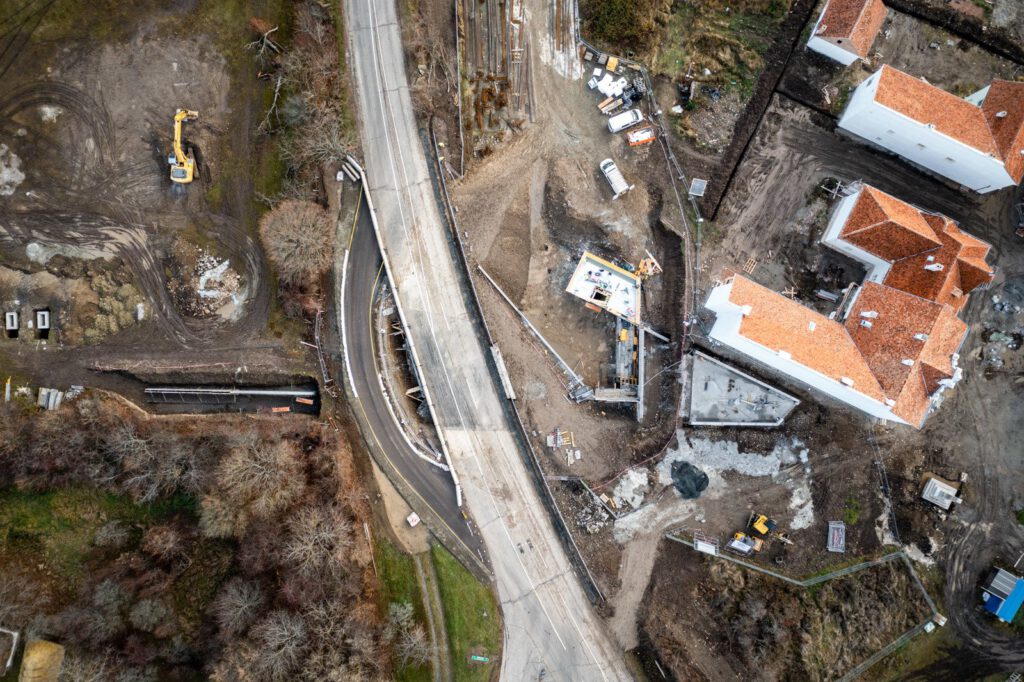 A kivitelezés során az út alatti rész már szerkezetkész állapotban van, pillanatnyilag a burkolat helyreállításon dolgoznak.