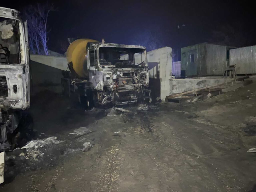 Négy teherautó gyulladt ki egy telephelyen belül hétfőre virradóra Pomázon, a Mester utcában.