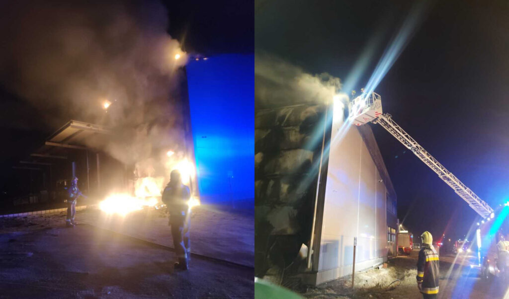 Február 14-én, hétfőn késő este csarnoképület falazata melletti raklapon lévő eszközök kaptak lángra hétfőn este Szentendrén, a Kőzúzó közben.