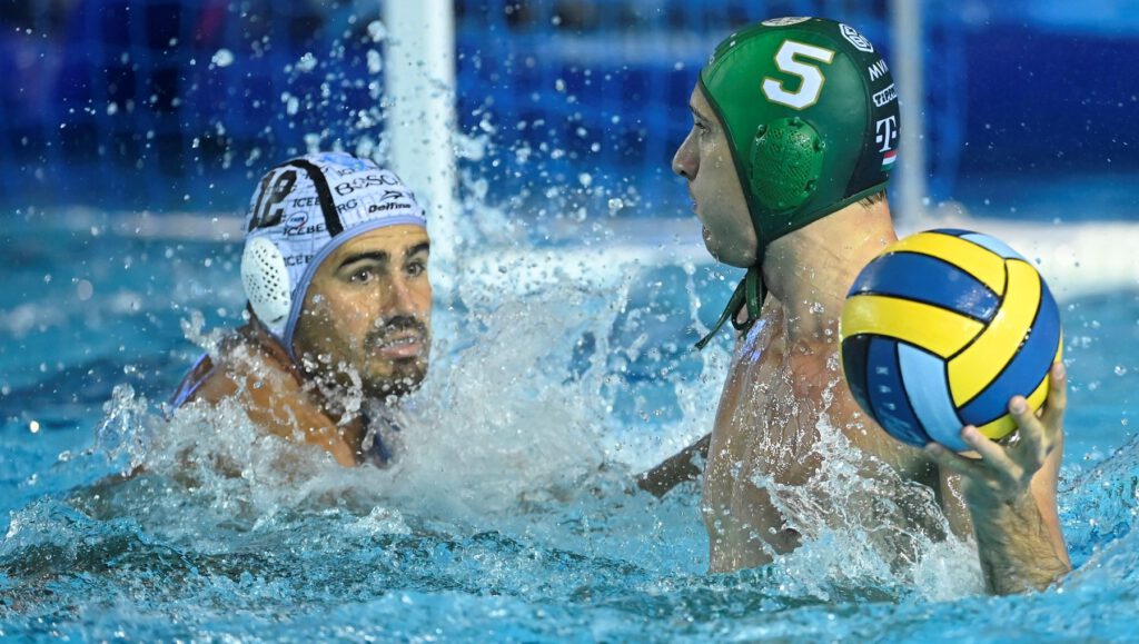 A pénteki elődöntőben három és fél percet kellett várni az első gólra, az olaszok az amerikai Benjamin Hallock szép megmozdulása után centerből kerültek előnybe. A zöld-fehérek a negyed felénél találtak be először, Nemanja Ubovic ugyancsak a „darálóból” verekedte ki magának a helyzetet és szerzett centergólt. Miközben az olaszok első három emberelőnyüket elhibázták – mindháromszor Vogel Soma volt a végállomás -, addig a zöld-fehérek második fórjukból Danyiil Merkulov által előnybe kerültek. Ezt rögtön a negyedik hátrányban újabb Vogel-védés követte. A negyedet Varga Dénes nagyszerű csavarása zárta, de a labda a kapufán csattant.