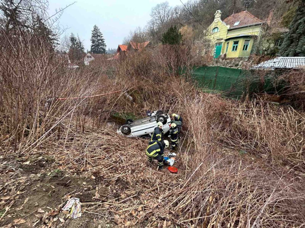 Március 7-én, kedden reggel szalagkorlát mellett csúszva patakmederbe borult egy személyautó Csobánkán, a Fő úton.
