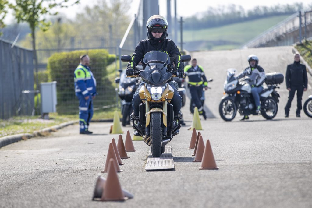 A tréningen a Pest vármegyei motoros rendőrök a napi szolgálataikból hozott tapasztalataikat megosztva mutattak be motorkezelési praktikákat. Síkban eltolt kapupárok közti elhaladás, csökkenő térközű bóják közti szlalomozás, piskóta-, lóhere-, csigaalakzatok „rajzolása” volt a feladat, a zsaruk általános, majd motor-, és vezetőspecifikus tanácsokkal látták el a pályának nekiveselkedő civileket. Kis sebességű, biztos manőverezést gyakoroltattak, ismételtettek, ami jól modellezi a városi forgalomban gyakran előforduló közlekedési helyzeteket.
