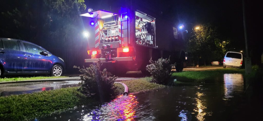 Szintén Szentendrén, az Egres úton húsz négyzetméteres pincébe víz ömlött. A felgyülemlett esővizet a helyi önkéntes és a szentendrei hivatásos tűzoltók szivattyú segítségével távolították el.