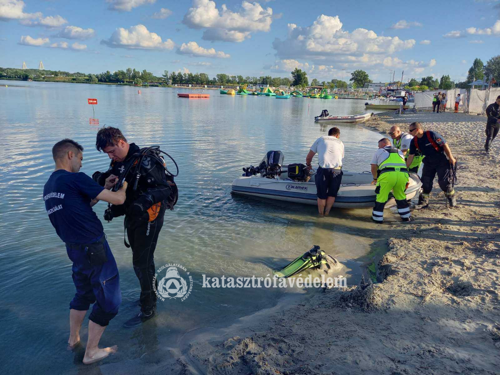 A strand kiürítése után a keresését a helyszínen tartózkodó vízi mentők, a Fővárosi Katasztrófavédelmi Igazgatóság búvárszolgálata, a szentendrei hivatásos tűzoltók, és a Pest Vármegyei Kutató- Mentő Szolgálat kezdték meg szonártechnikával, illetve búvárokkal és csónakokkal. A tavat a levegőből drónnal pásztázták. Közel három óra keresés után az eltűnt személyt megtalálták, az életét azonban megmenteni már nem lehetett.
