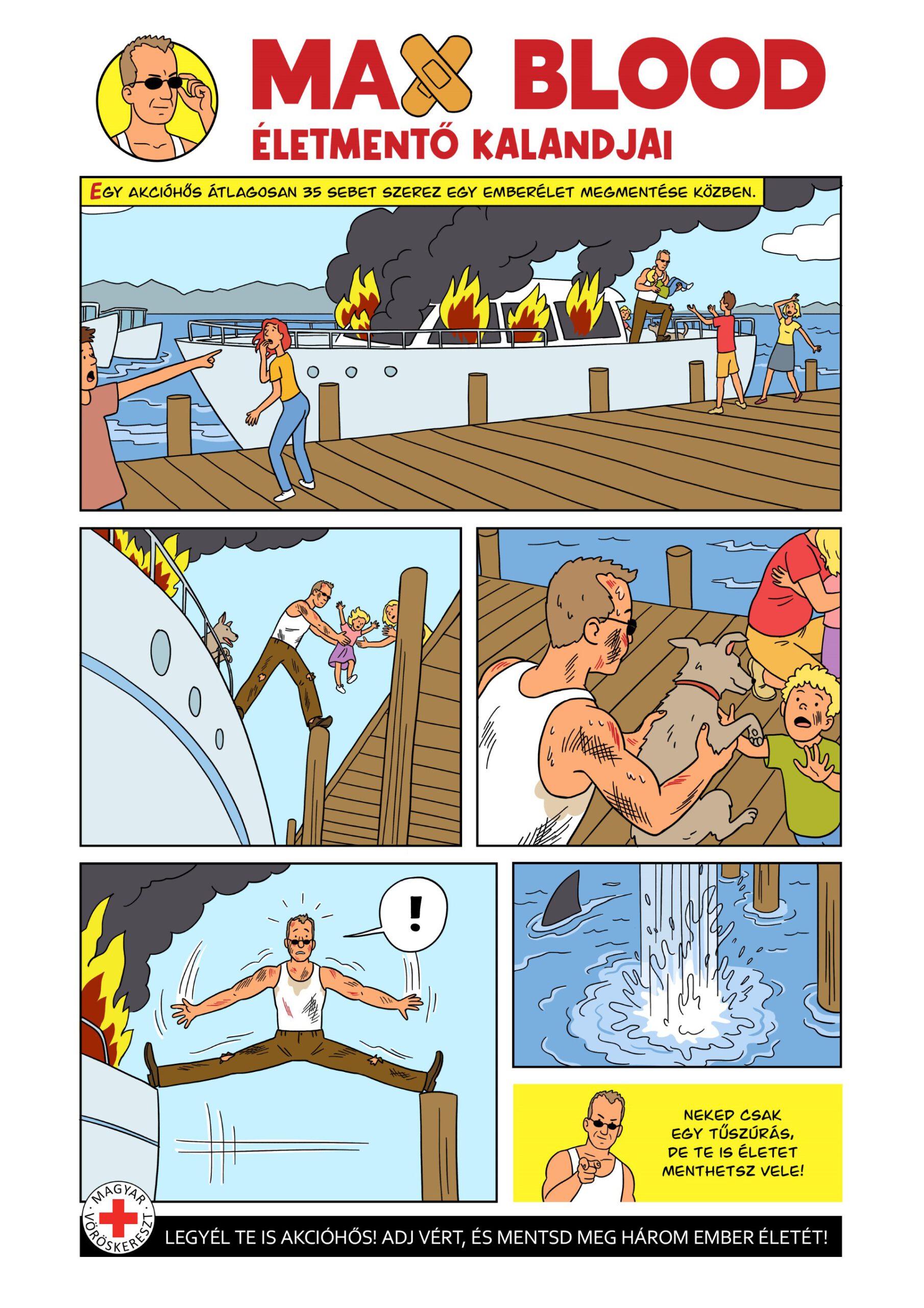 Közös kampányukban arra világítanak rá, hogy míg egy akciófilm hőse számtalan alkalommal adja vérét, hogy életeket mentsen, addig a Magyar Vöröskereszt véradó eseményein résztvevő önkéntes véradók számára elég csak egyszer vért adni, hogy három ember életét megmenthessék.