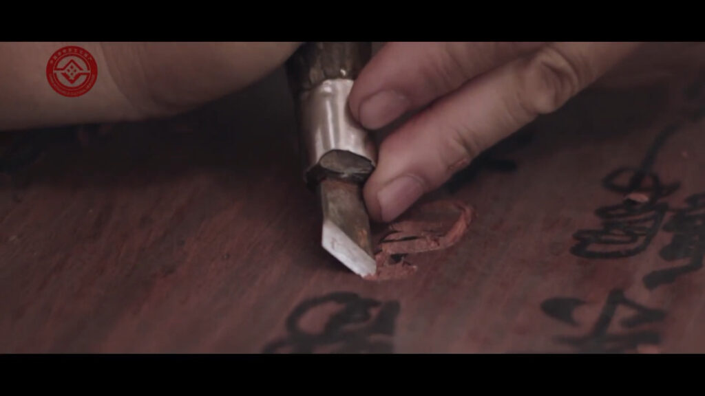 A kés módszer a kalligráfia miatt születik, a kalligráfia pedig a kés módszer miatt isteni. Az éles penge a fa táblán halad, helyreállítva a kalligráfus tollának lendületét és háromdimenziós szépségét, így a kalligráfia tele van érzelmekkel a tinta rímében.