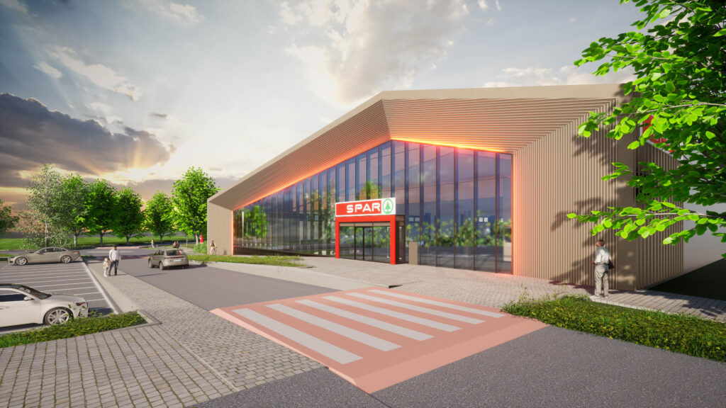 Az épület főhomlokzata modern és egyedi megjelenésű lesz. A szupermarket mintegy ezer négyzetméteres eladóterében a SPAR minőségi, bőséges áruválasztéka mellett kényelmi termékek sora várja majd a vásárlókat. A SPAR enjoy. önkiszolgáló kényelmi hűtőben és a hidegkonyhai pultban majonézes saláták, a csemegepultba illesztett SPAR to Go grillpultban pedig panírozott és grillezett ételek, valamint különféle köretek lesznek kaphatóak. A hagyományos pénztárak mellett hat önkiszolgáló kassza is segíti majd a gyorsabb fizetést.