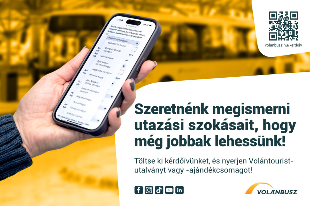 Széles körű szolgáltatásfejlesztési tervvel készül a Volánbusz az előtte álló időszakra annak érdekében, hogy minél magasabb színvonalon szolgálja ki az utazási igényeket. A közlekedési vállalat a megváltozott utazási szokások mellett azt szeretné megismerni, hogy az utasok milyen fejlesztéseket látnának szívesen a menetrend szerinti autóbusz-közlekedésben. Az online kérdőívet kitöltők között utazási utalványokat és ajándékcsomagokat sorsolnak ki.