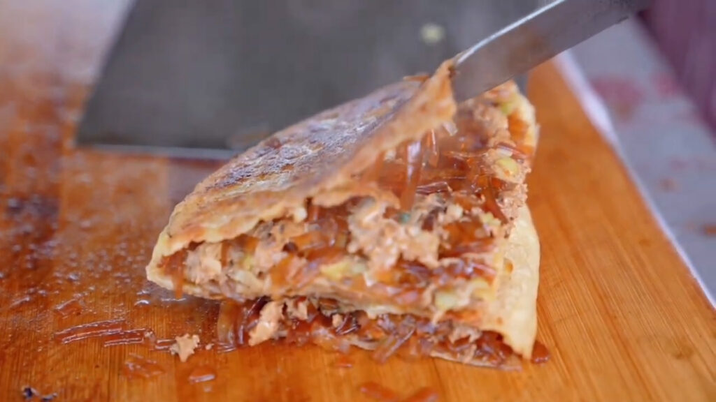 A Kangyuan húsos pite készítésének technikája öt generáción át öröklődött, minden generációval továbbfejlesztve a mesterséget. Ez a helyi finomság nagy hírnévre tett szert. A kulináris művészet további népszerűsítése érdekében a jelenlegi örökös, Fang Yanfeng, a hagyományos módszerek alapján különféle ízesítéseket fejlesztett ki, hogy megfeleljen a modern ízléseknek és preferenciáknak. A Kangyuan húsos piték főként húsos és vegetáriánus változatokba sorolhatók, a húsos piték pedig tovább oszlanak marha-, bárány- és sertéshúsos töltelékekre. Ezeket a pitéket aranyszínük, ropogós külsőjük, puha belsejük, papírvékony héjuk és gazdag ízű töltelékük jellemzi. Kiválóak ajándékozásra és azonnali fogyasztásra egyaránt, így ritka és szeretett finomságnak számítanak a helyiek körében.