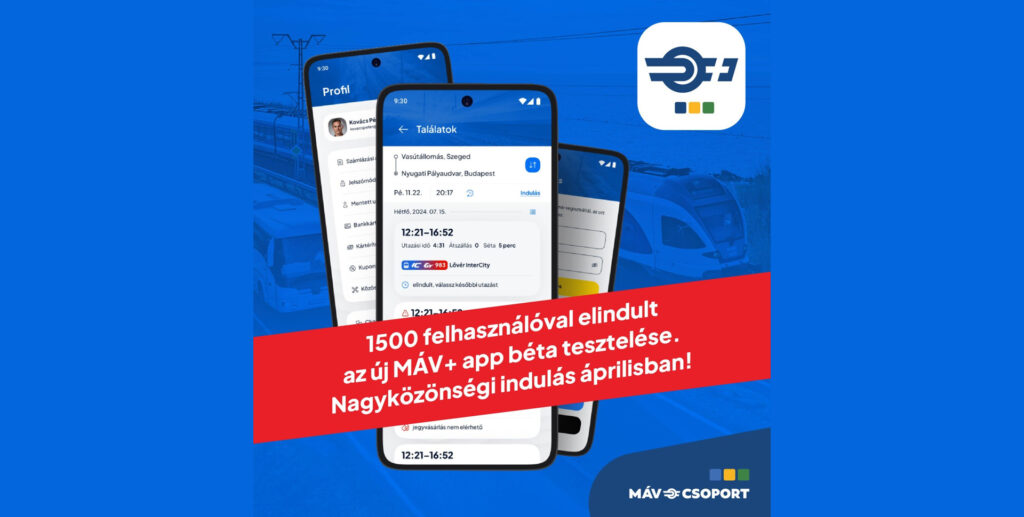 A  10 vállalás egyike az új, korszerű MÁV-csoport applikáció. A nagyközönség számára áprilistól elérhető, MÁV+ névre keresztelt alkalmazás mától 1500 tesztelő számára vált letölthetővé az App Store-ban és a Google Playen.